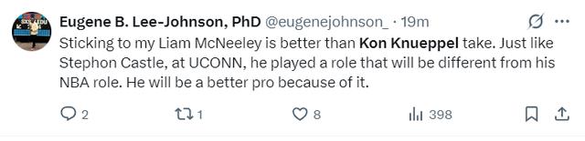 美媒:我一直坚持认为麦克尼利比克努佩尔强,他们在大学时期扮演的角色就截然不同,克努佩尔是一个投手,而麦克尼利能自主创造得分。